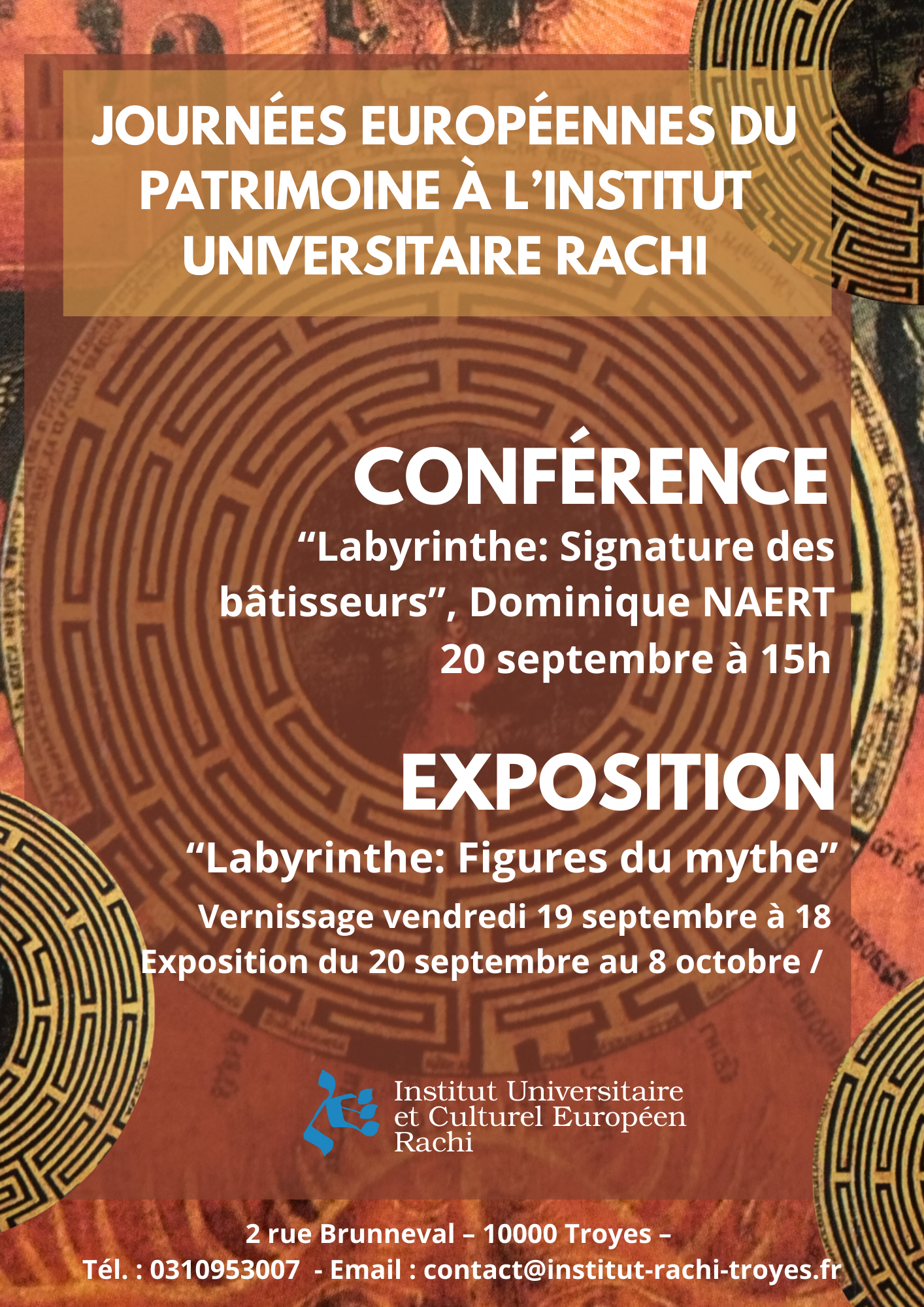 15 septembre 2025Non classéAdministrateur à l’occasion des Journées Européennes du Patrimoine, l’Institut Universitaire organise une exposition “Labyrinthe: Figures du mythe” dont le vernissage est prévu le vendredi 19/09 à 18h et du 20/09 au 8/10.
