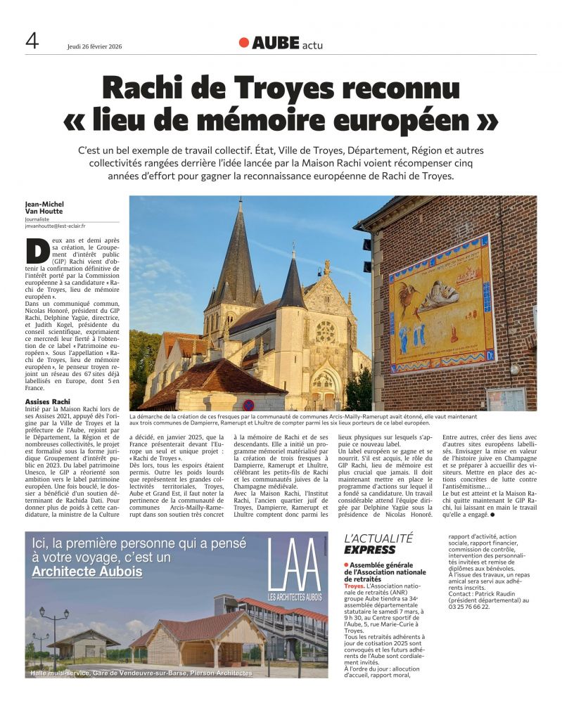 Parution dans Press’Troyes « Rachi de Troyes, lieu de mémoire européen » – juin 2025