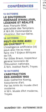 Parution dans Press’Troyes sur la conférence inaugurale – octobre 2025
